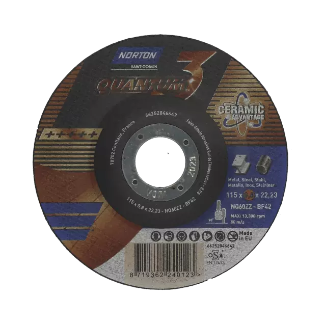 Disc tăiere Norton Quantum 3 (125 x 0.8 x 22.23 mm) pentru inox și oțel. Tehnologie ceramică NQ60ZZ pentru tăieri ultra-rapide, reci și precizie maximă.